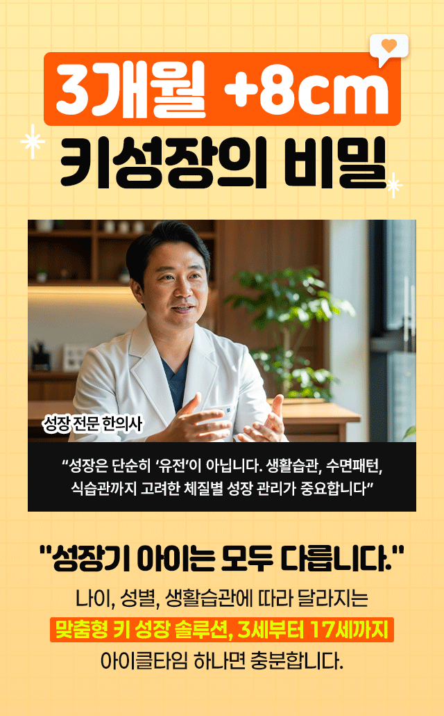로그인 로그아웃 My page 고민여기 고민해결 Q&A CONTACT 자주하는질문 문의게시판 로그인 바로가기 로그인 고민여기 고민해결 Q&A 자주하는질문 문의게시판 뒤로가기 성장 전문 연구진이 만든 키 성장 솔루션 아이클타임으로 우리 아이 키 자신감 UP! #키성장 #성장기 #맞춤형설계 성장 전문 연구진이 만든 키 성장 솔루션 아이클타임으로 우리 아이 키 자신감 UP! #키성장 #성장기 #맞춤형설계 성함 나이 성별 성별을 선택하세요 남성 여성 인증번호받기 인증번호확인 전체 동의 전체 동의 개인정보 수집 및 이용 동의 [내용보기] 개인정보 수집 및 이용 동의 [내용보기] 광고성 정보 수신 동의 [내용보기] 광고성 정보 수신 동의 [내용보기] 무료상담