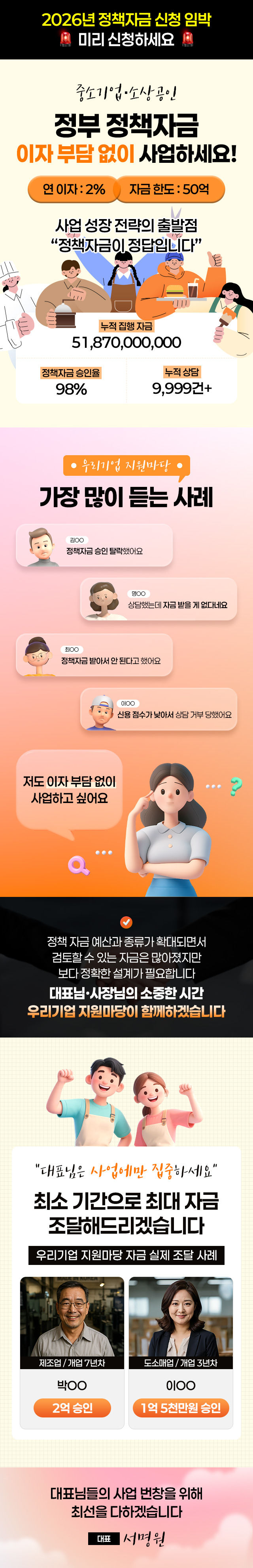 로그인 로그아웃 My page 고민여기 고민해결 Q&A CONTACT 자주하는질문 문의게시판 로그인 바로가기 로그인 고민여기 고민해결 Q&A 자주하는질문 문의게시판 뒤로가기 소상공인,중소기업 주목! 승인률 98% 정부정책지원자금 #중소기업 #소상공인 #정책자금 소상공인,중소기업 주목! 승인률 98% 정부정책지원자금 #중소기업 #소상공인 #정책자금 성함 나이 성별 성별을 선택하세요 남성 여성 인증번호받기 인증번호확인 전체 동의 전체 동의 개인정보 수집 및 이용 동의 [내용보기] 개인정보 수집 및 이용 동의 [내용보기] 광고성 정보 수신 동의 [내용보기] 광고성 정보 수신 동의 [내용보기] 무료상담