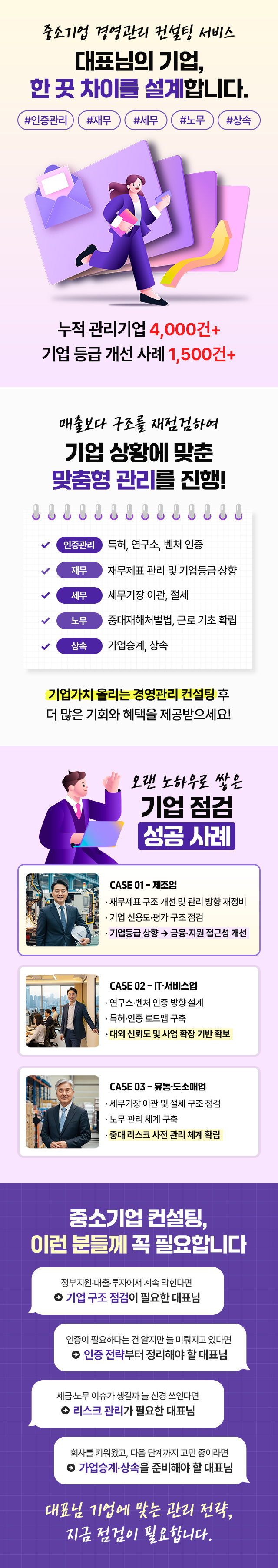로그인 로그아웃 My page 고민여기 고민해결 Q&A CONTACT 자주하는질문 문의게시판 로그인 바로가기 로그인 고민여기 고민해결 Q&A 자주하는질문 문의게시판 뒤로가기 중소기업 경영관리 컨설팅 서비스, 무료상담 받아보세요! #인증관리 #재무 #상속 중소기업 경영관리 컨설팅 서비스, 무료상담 받아보세요! #인증관리 #재무 #상속 성함 나이 성별 성별을 선택하세요 남성 여성 인증번호받기 인증번호확인 전체 동의 전체 동의 개인정보 수집 및 이용 동의 [내용보기] 개인정보 수집 및 이용 동의 [내용보기] 광고성 정보 수신 동의 [내용보기] 광고성 정보 수신 동의 [내용보기] 무료상담