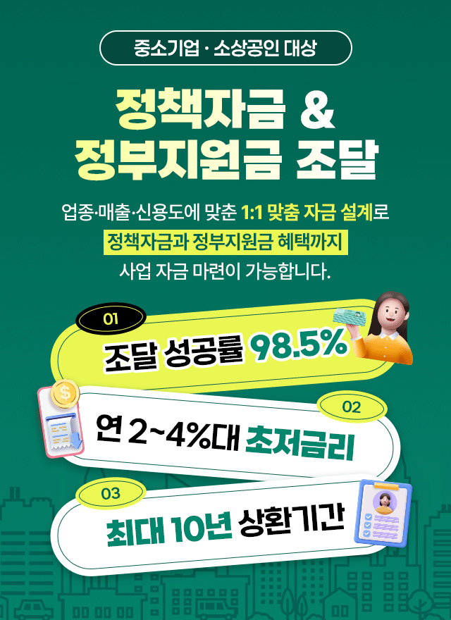 로그인 로그아웃 My page 고민여기 고민해결 Q&A CONTACT 자주하는질문 문의게시판 로그인 바로가기 로그인 고민여기 고민해결 Q&A 자주하는질문 문의게시판 뒤로가기 정책자금과 정부지원금 조달 1:1 맞춤 자금 설계 해드립니다! #정책자금 #사업자금 #정부지원금 정책자금과 정부지원금 조달 1:1 맞춤 자금 설계 해드립니다! #정책자금 #사업자금 #정부지원금 성함 나이 성별 성별을 선택하세요 남성 여성 인증번호받기 인증번호확인 전체 동의 전체 동의 개인정보 수집 및 이용 동의 [내용보기] 개인정보 수집 및 이용 동의 [내용보기] 광고성 정보 수신 동의 [내용보기] 광고성 정보 수신 동의 [내용보기] 무료상담