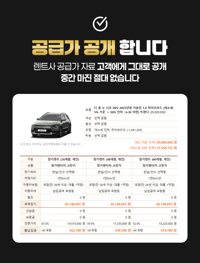 로그인 로그아웃 My page 고민여기 고민해결 Q&A CONTACT 자주하는질문 문의게시판 로그인 바로가기 로그인 고민여기 고민해결 Q&A 자주하는질문 문의게시판 뒤로가기 같은 차, 이렇게까지 싸질 수 있습니다 중간 마진 없는 최저가! #마진ZERO #다이렉트 #최저가 같은 차, 이렇게까지 싸질 수 있습니다 중간 마진 없는 최저가! #마진ZERO #다이렉트 #최저가 성함 나이 성별 성별을 선택하세요 남성 여성 인증번호받기 인증번호확인 전체 동의 전체 동의 개인정보 수집 및 이용 동의 [내용보기] 개인정보 수집 및 이용 동의 [내용보기] 광고성 정보 수신 동의 [내용보기] 광고성 정보 수신 동의 [내용보기] 무료상담