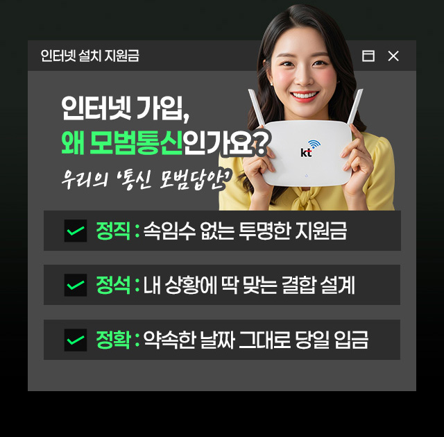 로그인 로그아웃 My page 고민여기 고민해결 Q&A CONTACT 자주하는질문 문의게시판 로그인 바로가기 로그인 고민여기 고민해결 Q&A 자주하는질문 문의게시판 뒤로가기 설치부터 지원금까지, 한 번에 해결하세요 고객 상황에 맞춘 최적의 인터넷 가입 혜택 #인터넷 #최대혜택 #모범통신 설치부터 지원금까지, 한 번에 해결하세요 고객 상황에 맞춘 최적의 인터넷 가입 혜택 #인터넷 #최대혜택 #모범통신 성함 나이 성별 성별을 선택하세요 남성 여성 인증번호받기 인증번호확인 전체 동의 전체 동의 개인정보 수집 및 이용 동의 [내용보기] 개인정보 수집 및 이용 동의 [내용보기] 광고성 정보 수신 동의 [내용보기] 광고성 정보 수신 동의 [내용보기] 무료상담